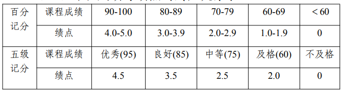 (一)课程成绩与绩点的对应关系表: